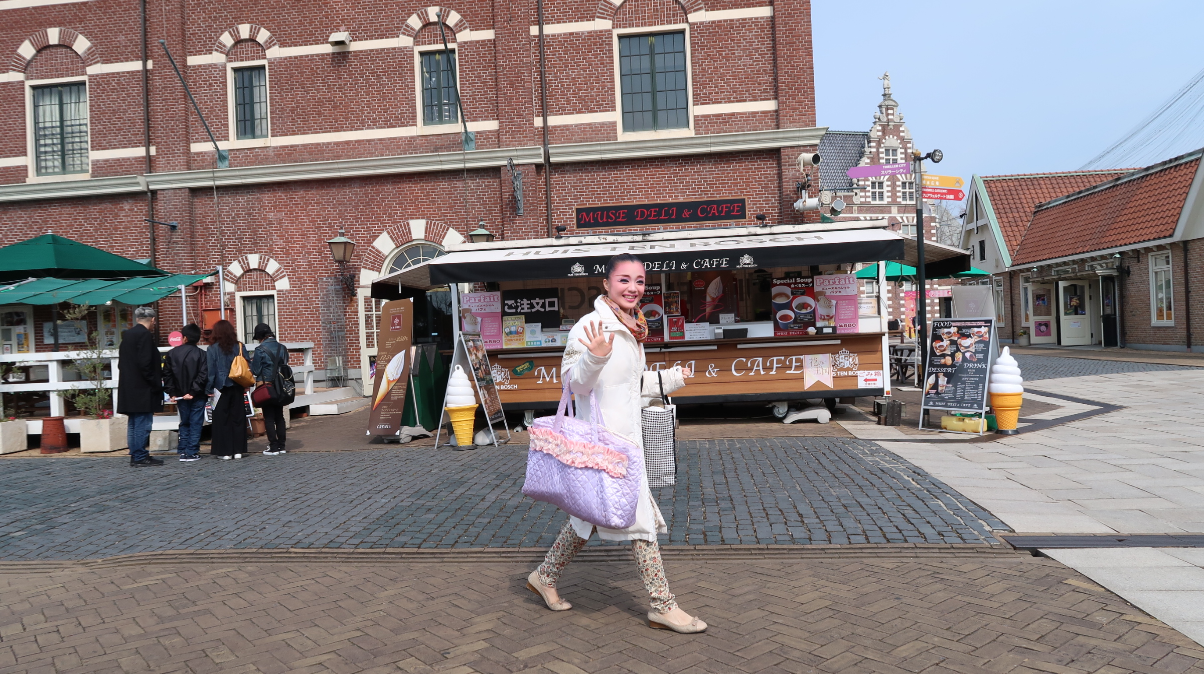 ショーがあるミューズホールと待機所(楽屋)の間を団員さんがハウステンボス内を歩いて移動しているのですが、ファンは写真を撮ったり、プレゼントを渡すチャンスだったりします。こちらから手を振れば、手を振ってくれる団員さんもいます。