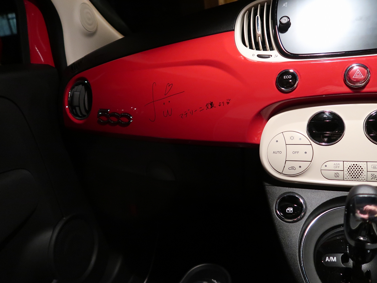 Fuuとしての一発目のサインがティシュの裏で、二発目がFIAT500のパネルなんです。